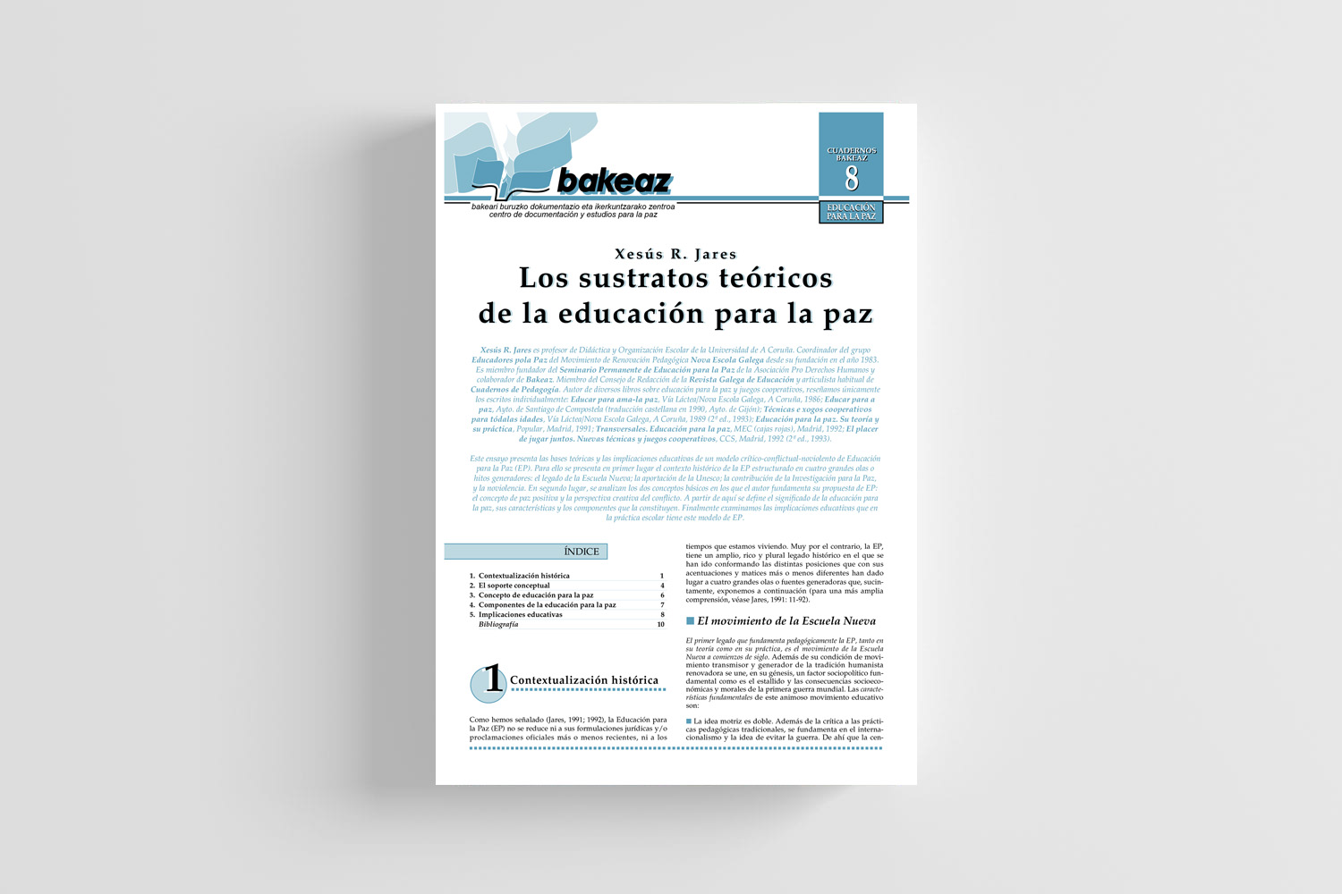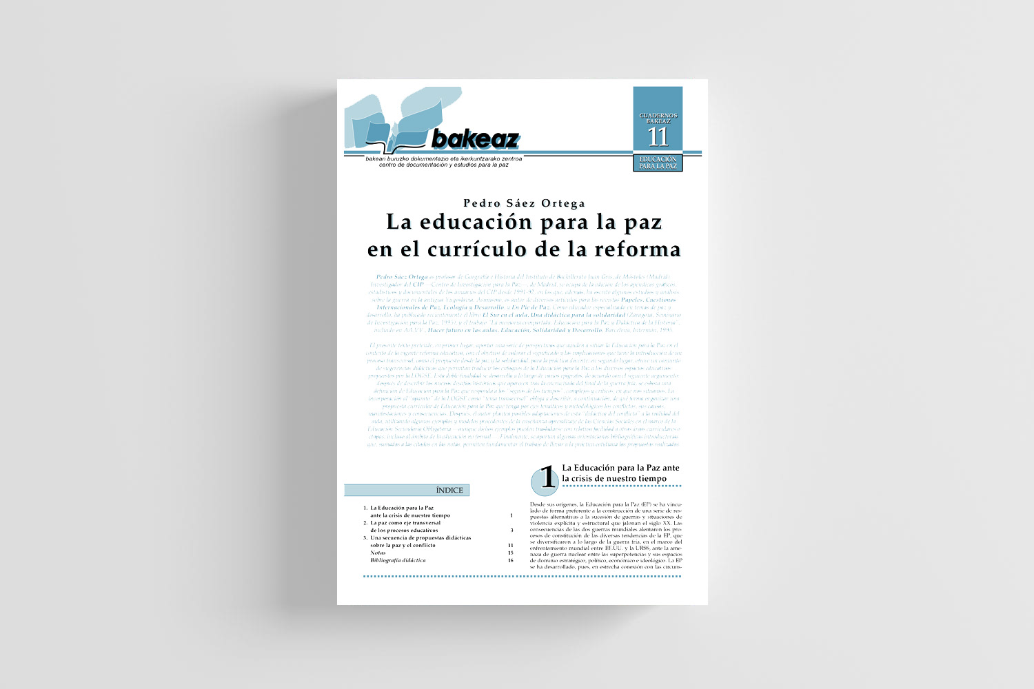 The Journal of Bakeaz brings together monographic studies on topics such as defense economics, security policies, peace education, armed conflicts, cooperation policies, economy, and ecology, conducted by experts associated with Bakeaz or regular collaborators.